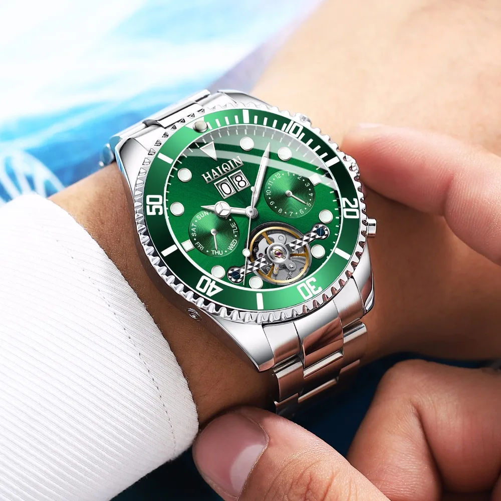 HIGH QUALITY Reloj Hombres 2019 HAIQIN Men's Watches Brand Luxury Tourbillon Automatic Mechanical Waterproof Spo