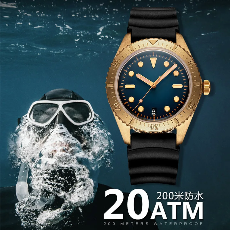200 M Diving Machinery Bronze MEN'S Watch Retro Waterproof Night Light Watches One