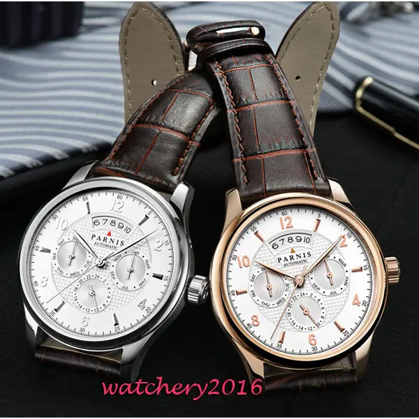 Review 42mm parnis white Black dial 2019 luxury top brand watch mens sapphire glass miyota Automatic Mecha