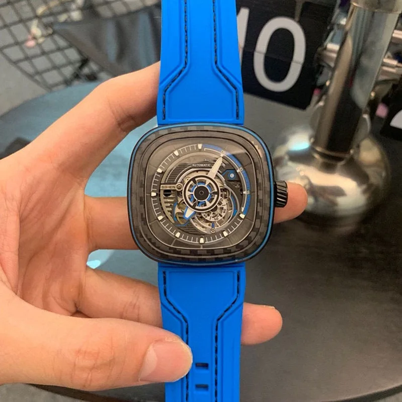 REVIEW TOP SELLER Miyota 8215 movement men's watch 47mm automatic mechanical watch Men rubber strap Carbon fiber dial