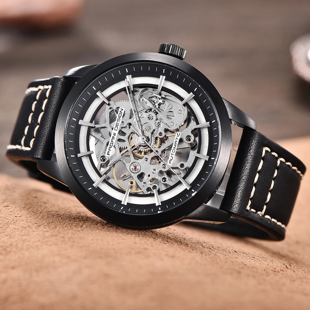 PAGANI DESIGN Brand Hot Sale 2019 Skeleton Hollow Leather Men's Wrist Watches Luxury Mechanical Mal